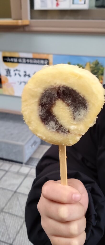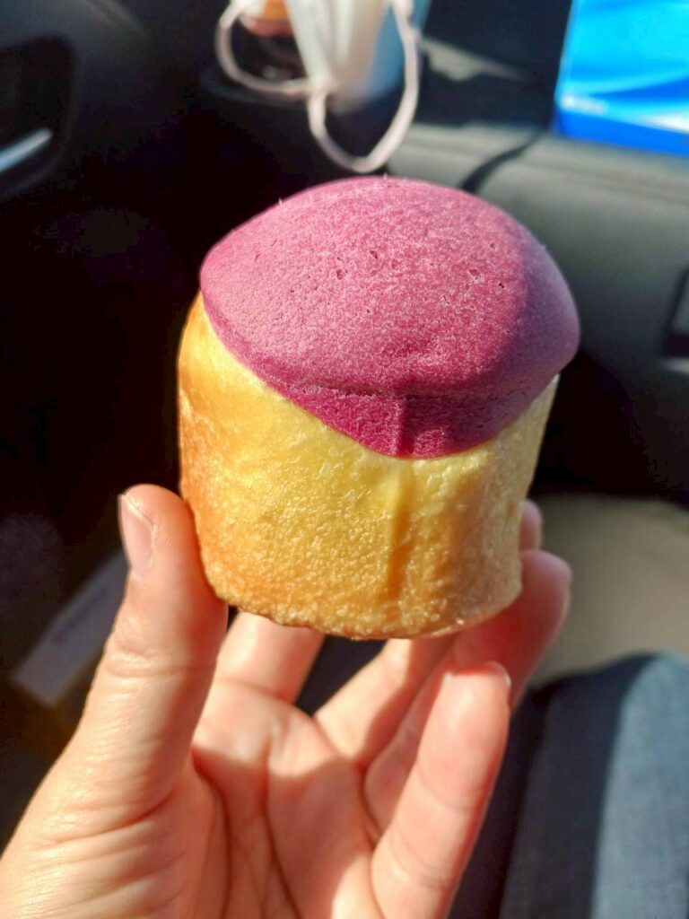 • ビジュアルと食感: 表面を覆う紫色の生地はパリパリとしていて、見た目もまるでお芋そのもの。